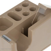 ✅پایه چسب شاهین کد 1000 دارای چندین محفظه برای نگهداری اقلام خرده در روی میز تهیه شده از پلاستیک با کیفیت ، داخل این نوع پایه چسب با موادی پر شده است که هم سنگین باشد و هم در زمان کشیدن چسب از جای خود تکان نخورد تا کاربر بتواند به راحتی با آن کار کند.