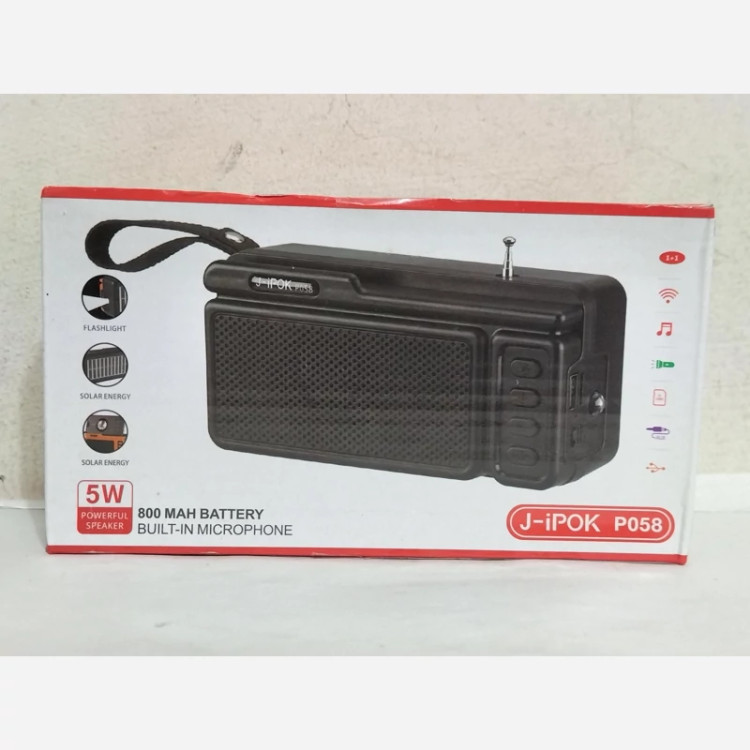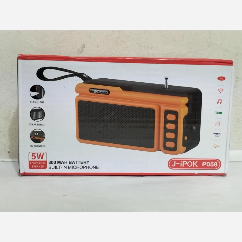 اسپیکر بلوتوثی قابل حمل J-IPOK مدل P058 دارای پنل خورشیدی و چراغ قوه دو حالته،دارای بلندگوی قدرتمند 5 واتی (تخفیف ویژه)