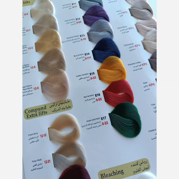 آلبوم مویی،کاتالوگ رنگ موی کالیون Kalyon شامل 24 تنوع سری رنگ مو با 118 طیف رنگی مختلف