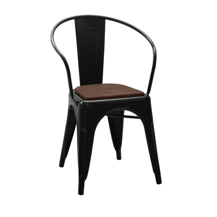 صندلی تولیکس فلزی دسته دار از مدلهای پرفروش صندلی کافه میباشد که در کافهها و رستورانهای مدرن استفاده میشود. جنس صندلی کاملاً فلزی میباشد و با رنگ الکترواستاتیک پوشانده شده است. با توجه به این ساختار به راحتی میتوان از این صندلی رستورانی در شرایط محیطی مختلف استفاده کرد.
