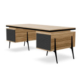 میز اداری مدیریتی مدرن مدل پیوت با طراحی شیک و ترکیب رنگهای گردویی و مشکی تأثیری قدرتمند روی فضای اتاق مدیریتی شما دارد. جنس بخش چوبی میز از MDF درجه یک با روکش محافظ ضد خط و خش میباشد. پایهها نیز فلزی بوده و با رنگ پخت کوره پوشانده شده است که ضمن زیبایی مقاومت بالایی دارد.