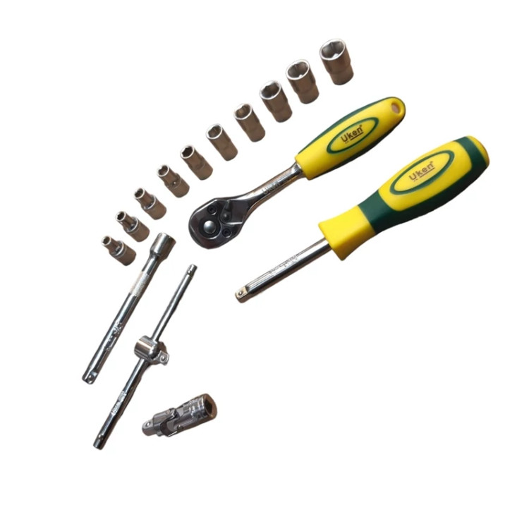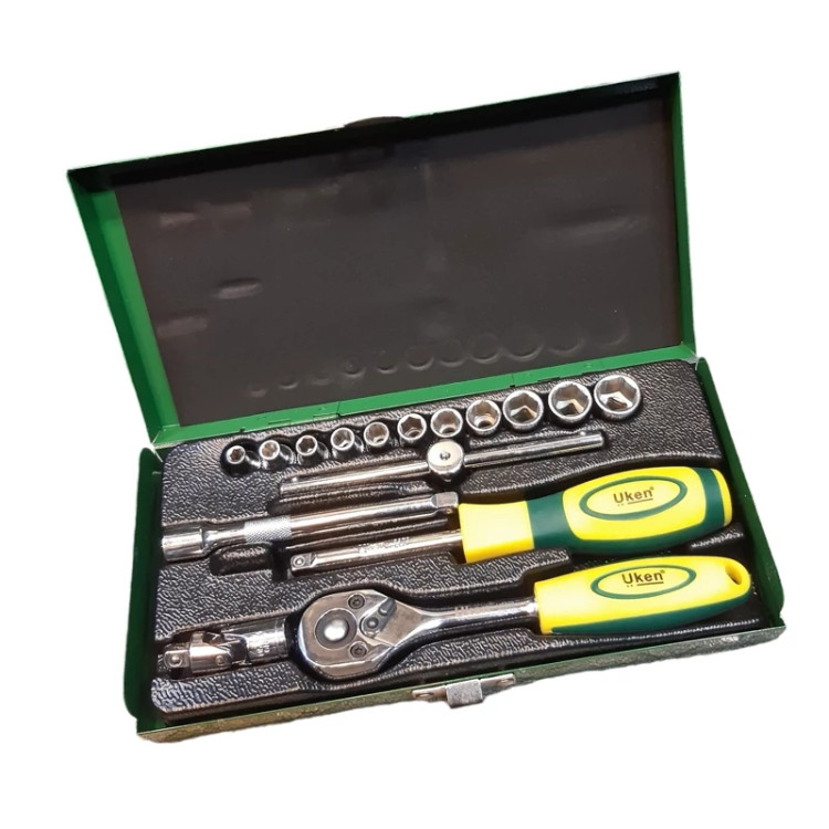 مجموعهی فوق یکی از محصولات تولیدی شرکت uken تایوان 🇹🇼 بوده است . این محصول کیفیت ساخت بسیار بالایی دارد و دارای بکس های مات می باشد.میتوان آن را یک مجموعه آچار خوشساخت دانست. در این محصول ۱۶ آچار و سری بکس و سری پیچگوشتی وجود دارد .
