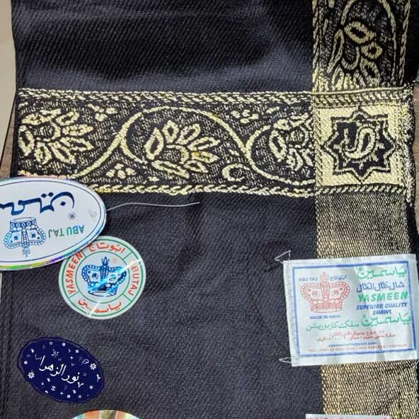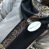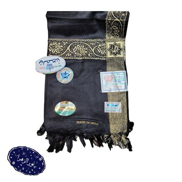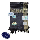 شال کشمیری رنگ زمینه مشکی با نوار طلایی،قهوه ای،آجری