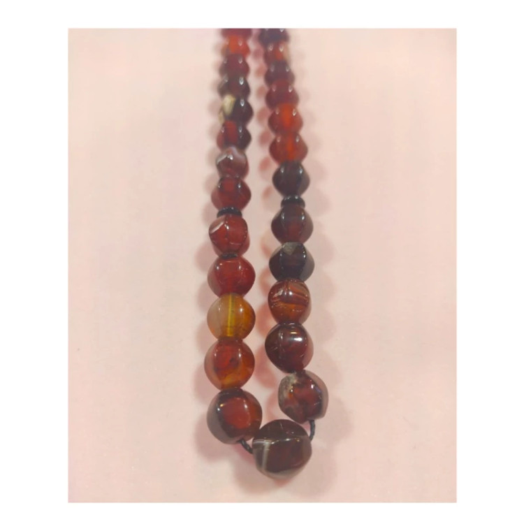 - تسبیح عقیق سلیمانی 33 دانه چهار تراش گرد کد 025