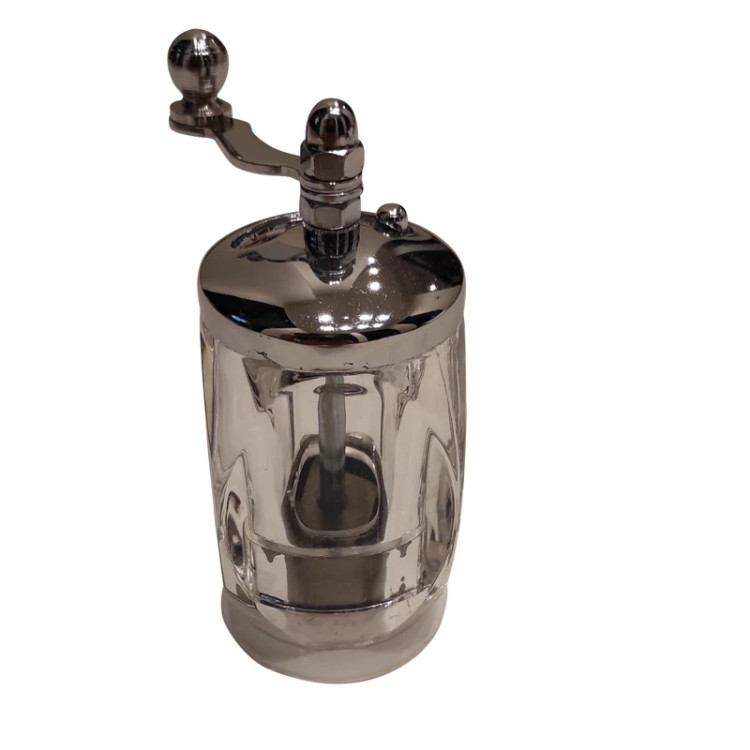 - زعفران را از دریچه بالا ریخته و در جهت عقربه های ساعت بچرخانید به راحتی سابیده می شود و در مخزن زیر آن جمع می شود .