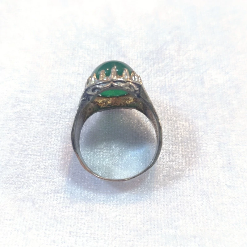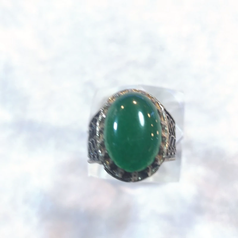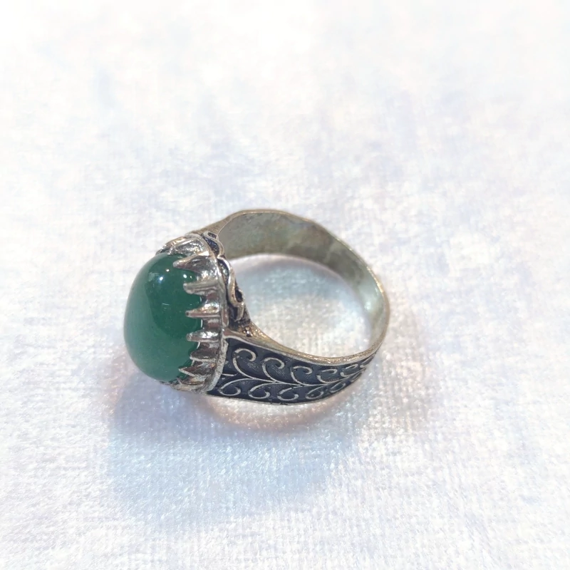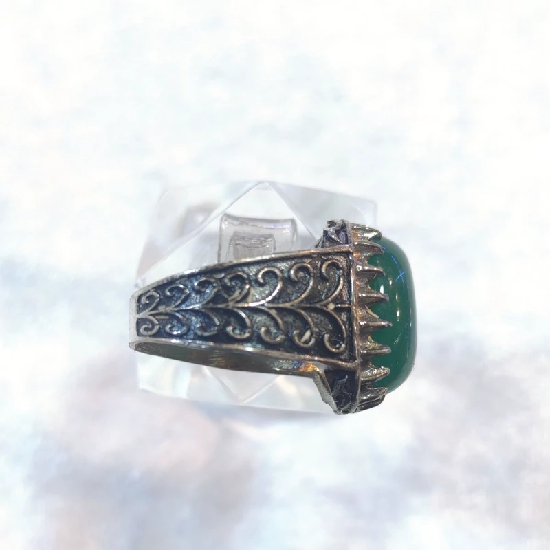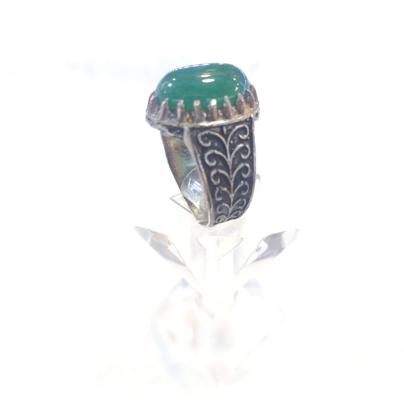 - انگشتر نقره مردانه عقیق سبز مدل نخل کد 005