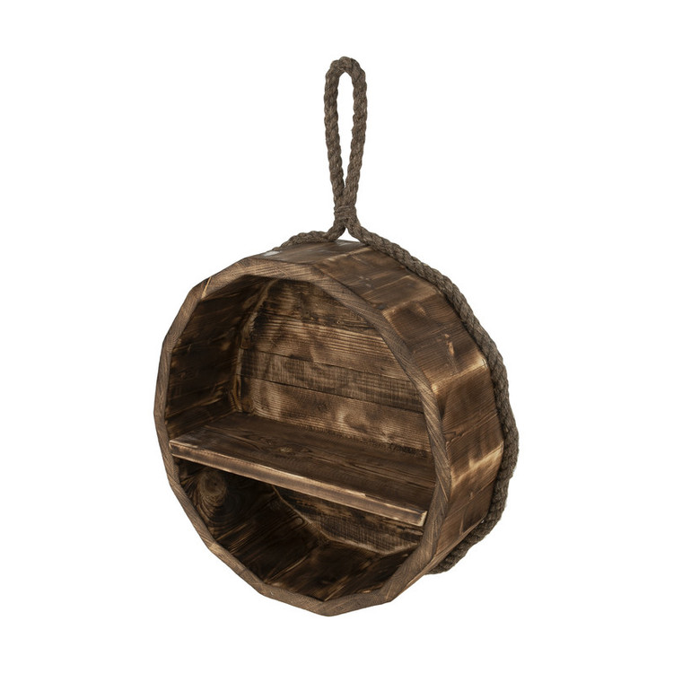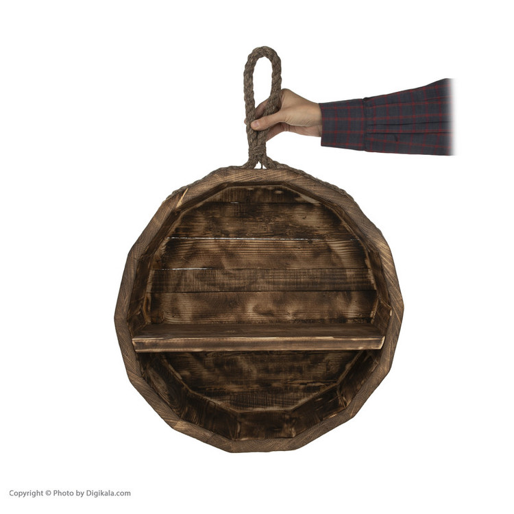 از طناب دور به روی میخ آویز می شود و داخل استند می توانید وسایل قرار دهید و از جنس چوب دستساز می باشد
