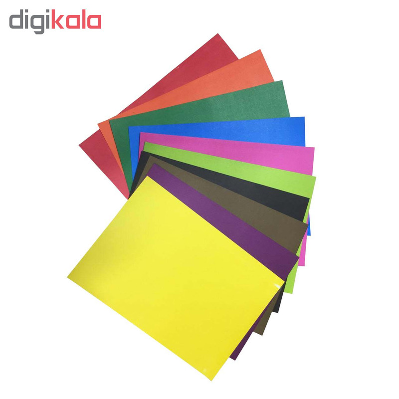 مقوای بزرگتر از A4 دارای ۱۰ رنگ از هر رنگ 4 برگ مناسب کاردستی و کارهای هنری.رنگها در عکس ها به صورت مجزا نشان داده شده است