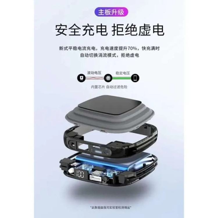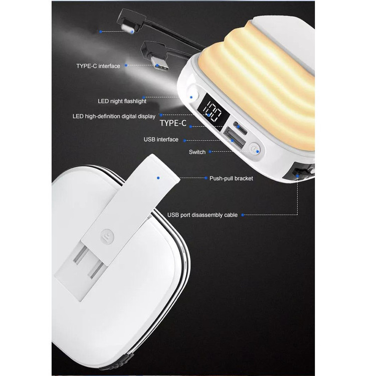 دارای یک چراغ قوه LED باتری 10000 میلیآمپر مدت زمان شارژ 7 ساعت دو کابل Type-C و لایتینگ دارای یک چراغ با نور آفتابی یک خروجی USB-A با ولتاژ 5 ولت دارای یک استند کشویی که در زیر آن تعبیه شده صفحه نمایش دیجیتال برای نشان دادن میزان باتری