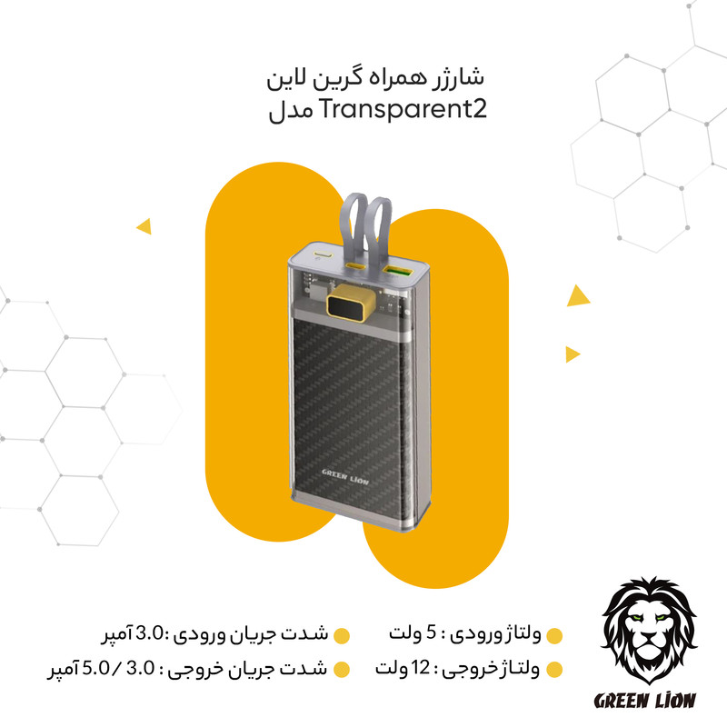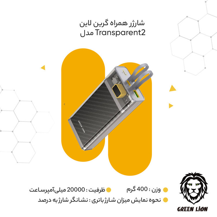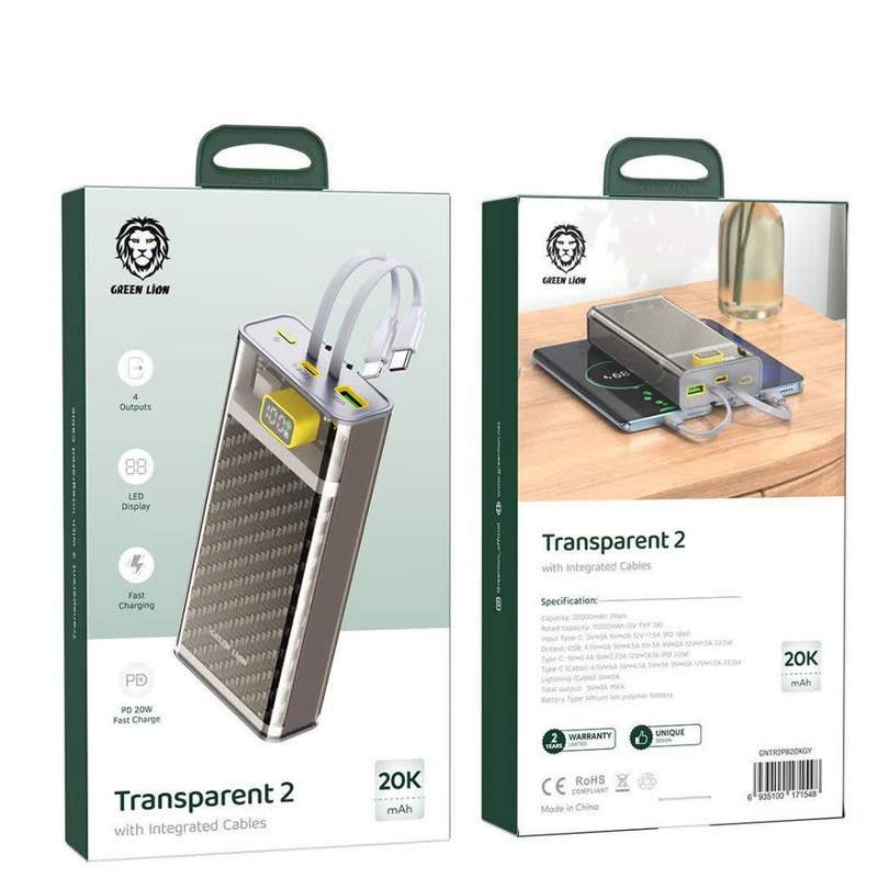 پاوربانک گرین لاین مدل Transparent 2 ظرفیت 20000 میلیآمپر ساعت