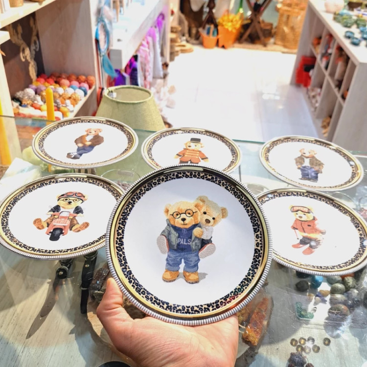 بشقاب دیواری نقاشی دیواری خرس دیوارکوب پو تابلو فانتزی کادویی نفیس کادویی خاص ست اتاق کودک خرس پیشدستی بشقاب خرسی