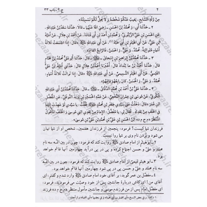 کتاب متن و ترجمه کمال الدین و تمام النعمه 2جلدی اثر شیخ صدوق مترجم منصور پهلوان