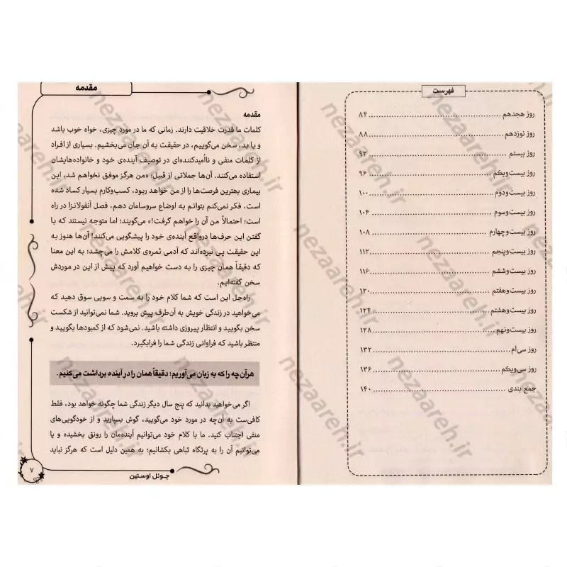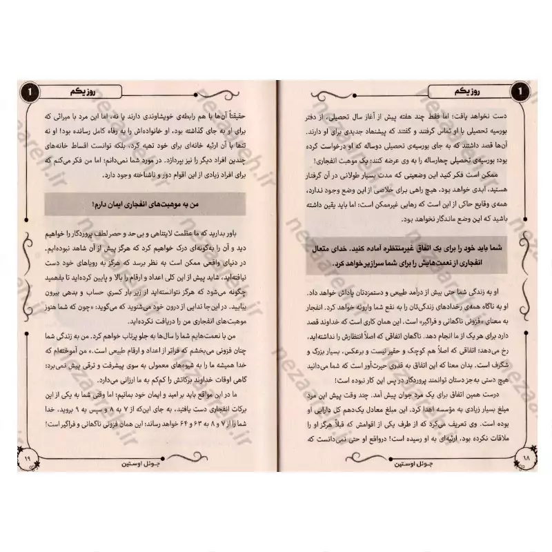 با خواندن این بخش ها و عمل به آنچه گفته شده می توانید آینده ی خوبی را برای خودتان اختصاص دهید و سخنان مثبت، الهام بخش و دلگرم کننده ی آن را بخوانید.باور دارم اگر روزی یک بخش از آن را بخوانید در مسیر رحمت خداوند قرار خواهید گرفت .