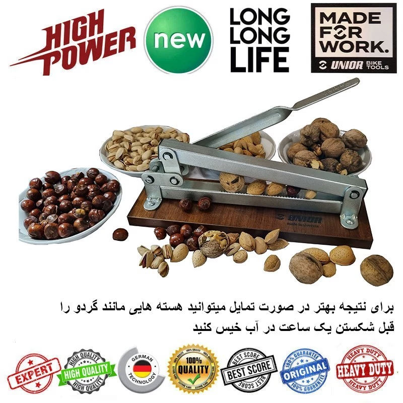 شاید بسیاری از مردم در دنیا کمپانی یونیور یوگسلاوی یا اسلوونی را برترین برند در زمینه تولید ابزار آلات صنعتی بدانند . ولی واقعیت این است که این شرکت در بیشتر زمینه های تولیدات مانند صنایع تولید فولاد (صنایع تولید فولاد یونیور اسلونی جز برترین صنایع تولید فولاد دنیا می باشد) و همچنین پزشکی نفت و گاز و بسیاری از صنایع با نام های تجاری دیگر جز برترین ها بوده است .یکی دیگر از زمینه های طراحی و تولیدی جدید این شرکت در زمینه ابزارهای کاربردی خانگیست. دستگاه هسته شکن چند منظوره یونیور ، برای شکستن پوست سخت انواع خشکبار ازجمله گردو، بادام، فندق، پسته دربسته و هسته زردآلو و بقیه هسته های نرم و سخت به کار میرود. جنس این محصول از فولاد ضد زنگ آبکاری شده به رنگ نقرهای است؛ به همین دلیل بسیار محکم، نشکن و ضد زنگ و خوردگی و اسید است. محصول به شکلی سبک، کمحجم و از لحاظ ارگونومی بسیار عالی طراحی شده است. قطعات کوچک و تیز و اضافه مثل پیچ و فنر و... ندارد و از این جهت برای کودکان بیخطر است. کار کردن با این محصول چندکاره، نیروی زیادی نمیخواهد و برای همین برای عزیزان سالخورده کار با این دستگاه به شدت راحت است. در این محصول، فاصله اهرمها هنگام بسته شدن بسیار فوق العاده طراحی شده است طوری که اگر انگشت زیر اهرم قرار بگیرد، آسیب نخواهد دید. این محصول بسیار زیبا کاملا بیصداست و شما با خیال راحت هر ساعت از شبانه روز در منازل آپارتمانی میتوانید از آن استفاده کنید . یونیور که همیشه در ساخت و طراحی ابزار های دستی در دنیا بهترین بوده بدون شک در تولید ابزار آلات خانگی هم کاملا بی رقیب در دنیا پیشقدم می باشد . ساخت و پردازش این هسته شکن در کشور آلمان و اسلونی صورت گرفته است . این دستگاه به گونه ای طراحی شده است که با اعمال نیروی مناسب، مانع از خرد شدن هسته میشود. تمام موارد کیفی و فنی این دستگاه باعث شده است که این محصول تولید شرکت یونیور در نوع خود در دنیا بیرقیب باشد .
