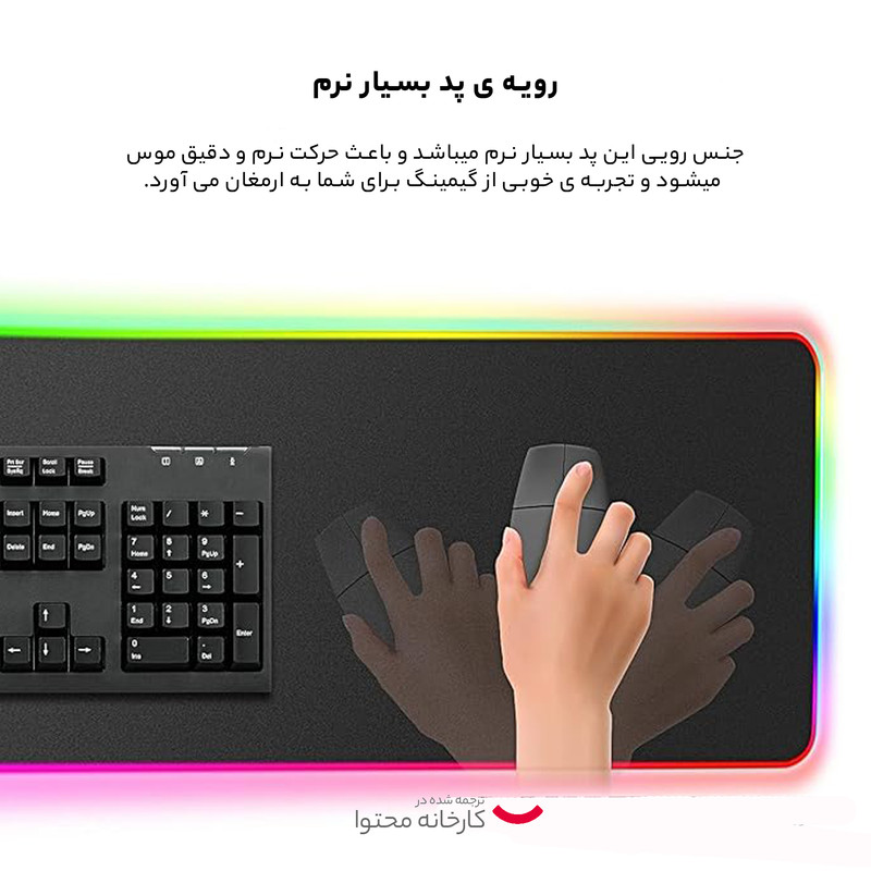 دارای 12 حالت تغییر نور استفاده از پارچه ترکیبی برای سرعت و کنترل بهتر ماوس دارای سطح ضد لغزش طول کابل : 1.5 متر دارای کلید تغییر وضعیت نور و حالت RGB 12 حالت تغییر نور