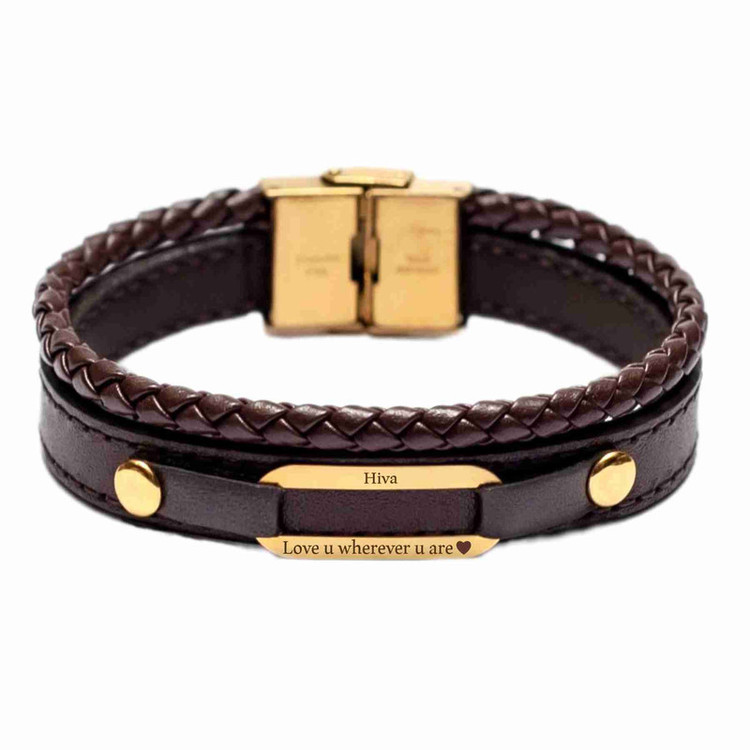 دستبند طلا 18 عیار مردانه لیردا مدل اسم هیوا 6400