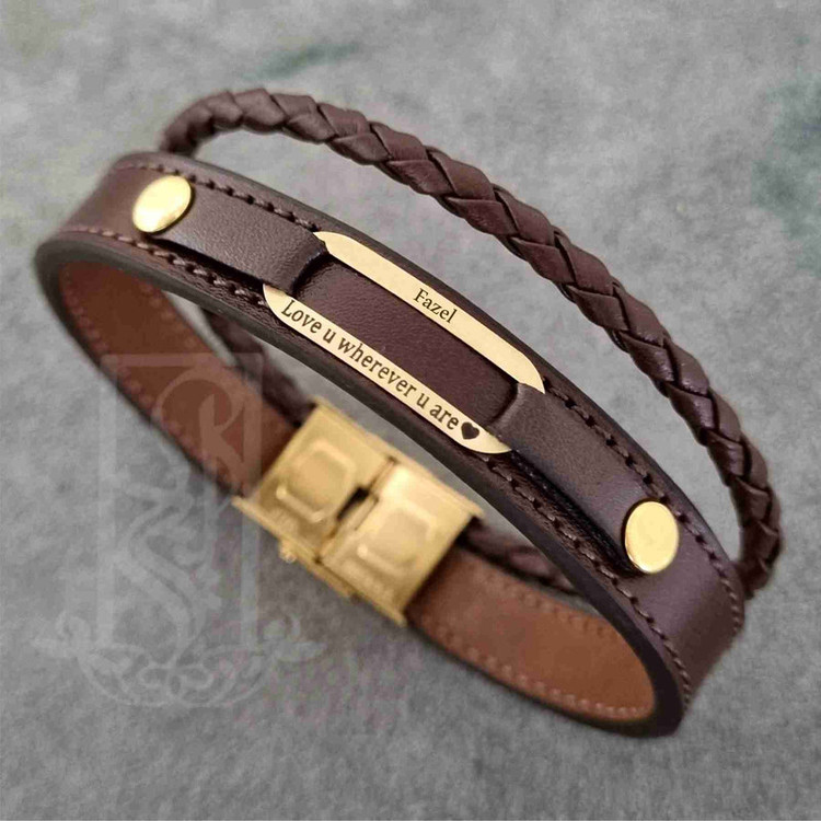 دستبند طلا 18 عیار مردانه لیردا مدل اسم فاضل 6400