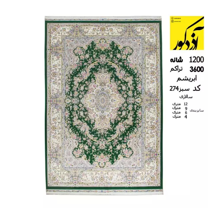 اندازه فرش: 12 متری (4*3) | 9 متری (3.5*2.5) | 6 متری (3*2) | 4 متری (2.25*1.5) | 1.5*1