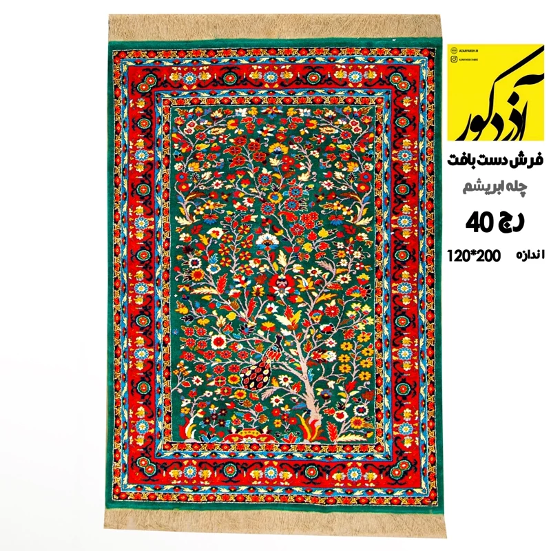 فرش دست بافت تخت بافت چله ابریشم رج 40 (اندازه 200*120)
