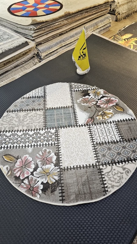 فرش ماشینی گرد 1متری دلیران،طرح فانتزی 2189
