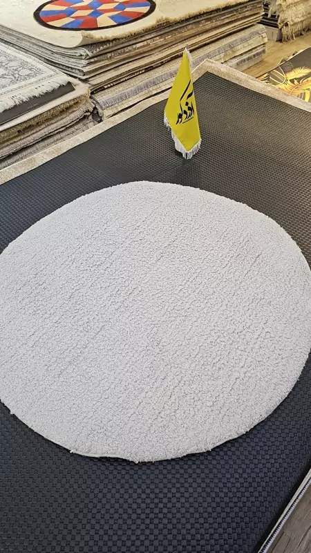 فرش ماشینی گرد 1متری پلاتین،فلوکاتی زمینه صورتی