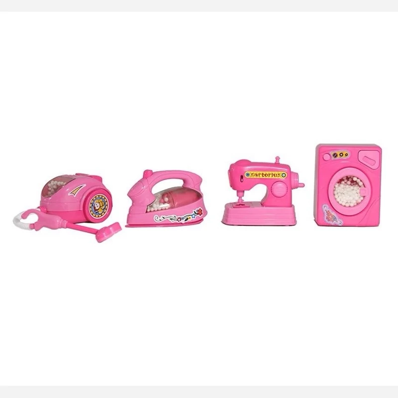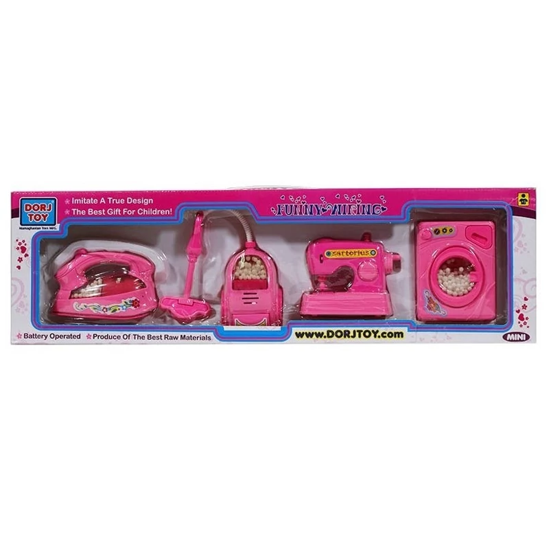 لوازم خانگی 4 تکه جارو برقی اتو لباسشویی چرخ خیاطی چراغدار باتری خور اسباب بازی بامبی