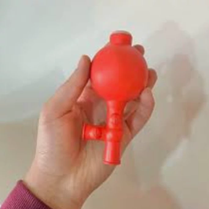 1- کلید A را فشرده و حباب لاستیکی را فشار میدهیم تا هوا خارج شود.