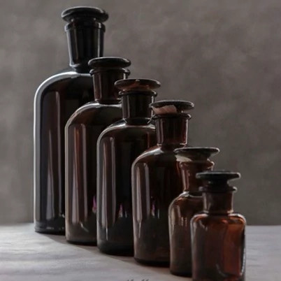 بطری شیشه ای مایعی رنگی تیره