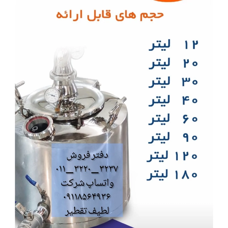 توجه : حجم های ۱۲ تا۲۰ لیتری فاقد دماسنج بر روی دیگ میباشند جهت استاندارد سازی فقط یک عدد دماسنج دارند.