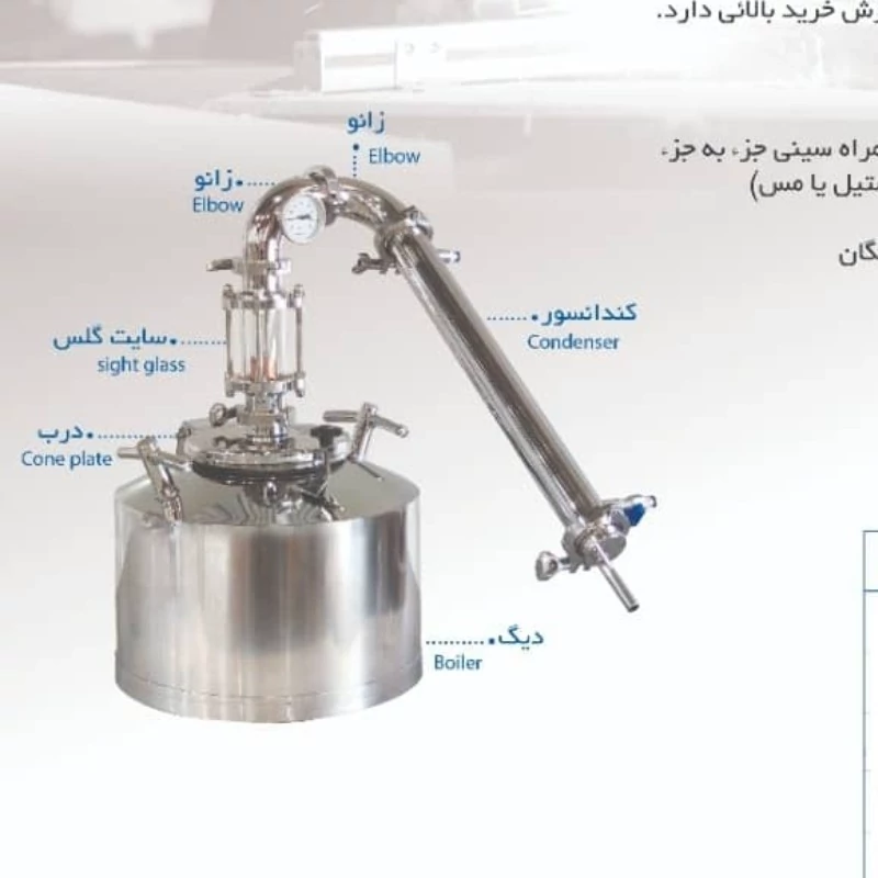 دیگ تقطیر استیل مدلAM حجم ۸ لیتر حرفه ای همراه با خنک کننده