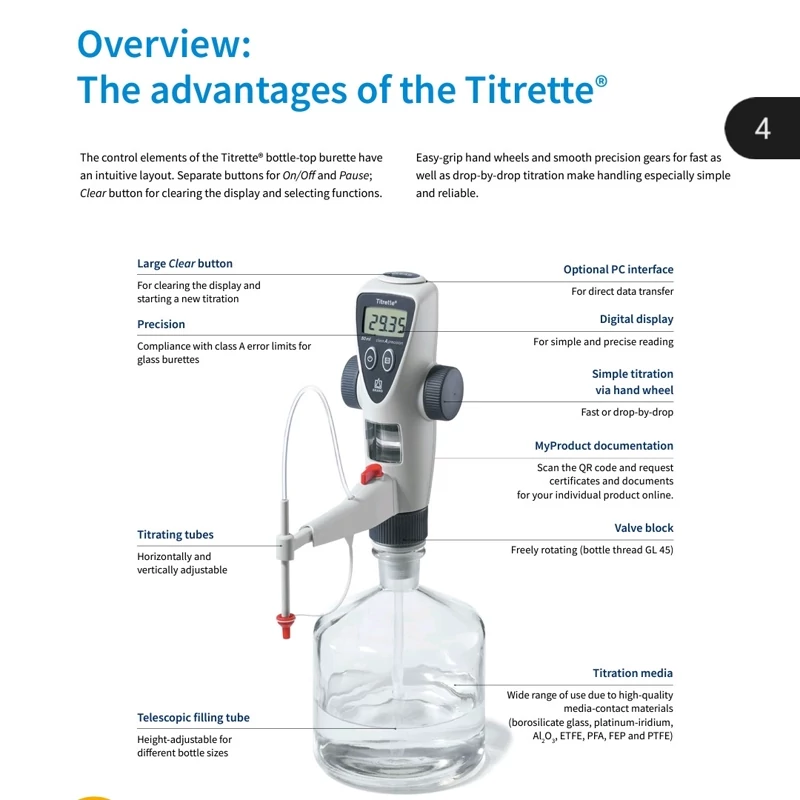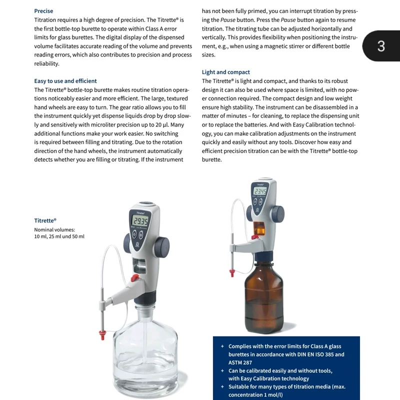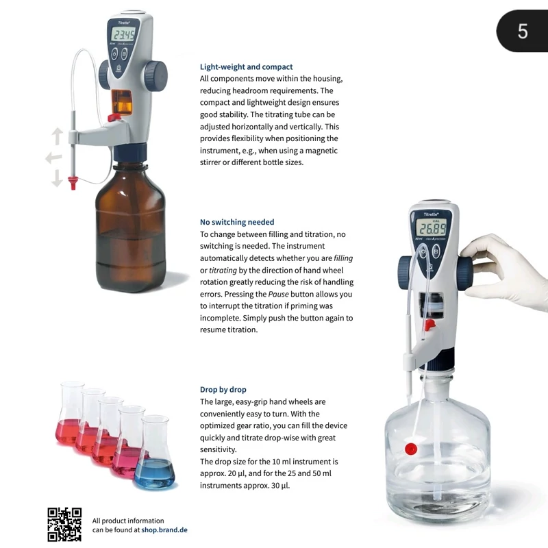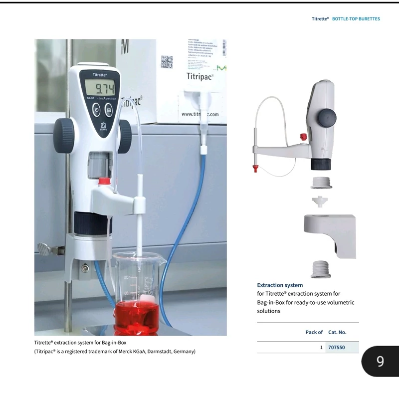 بورت دیجیتال 50 میلی لیتری جدید کمپانی Brand تحت نام تجاری Titrette که به عنوان یک بورت الکترونیکی نیمه اتوماتیک نیاز کاربران در کلیه آزمایشگاه های پایه شیمی را برطرف می سازد.