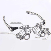 ذره بین ساعت سازی مدل 9892G فریم عینکی است که به آسانی روی صورت قرار میگیرد. این ذره بین دارای 4 جفت عدسی با بزرگنمایی 10، 15 ، 20 و 25 برابر است . در دو طرف این کالا LED جهت تابش نور وجود دارد. همچنین میتوان به جای دسته عینکی از کش مخصوص داخل بسته دستگاه برای قرارگیری روی صورت استفاده کرد. با آزاد بودن دستها ، برای کارآیی و عملکرد بهتر در کارهای ریز و حساس قابل استفاده است. کار با ذره بین عینکی مدل 9892G نسبت به ذره بین های دستی بسیار راحت تر است خصوصا برای استفاده طولانی مدت که چشم ها به دلیل تغییرات مداوم فاصله ، بدلیل خستگی دست دچار مشکل میشوند. در صنایع و مشاغل ریز و دقت بالا مثل طراحی ساخت و تعمیر در طلا سازی و جواهر سازی ، الکترونیک، قالب ریزی و سازه ، مجسمه سازی، قالب سازی، کار با ماشین پرس ، محصولات دقیق مثل دوربین ها، مدار های الکترونیکی،تعمیرات کامپیوتر ، سیستم های الکترونیکی ، خودرو ، تلفن همراه و در استفاده عمومی همچون جمع آوری تمبر ، خواندن، نقاشی و… قابل استفاده می باشد. نور چراغ این عینک ال ای دی LED بوده و نور تیز ولی متمرکزی دارد یعنی پخش نشده و به این معنی است که شما می توانید آن را در حالی که دیگران در خواب هستند یا در حال تماشای تلویزیون استفاده کنید و یا برای انجام هر کاری که در آن اتاق نور کم باشد استفاده کنید. این مدل به دلیل فاصله کانونی بسیار نزدیک (حدود 1 الی 5 سانتیمتر) برای کارهای خاص و اهداف خیلی ریز مثل ساعت سازی مناسب میباشد، و نیاز به نزدیک بودن سوژه یا هدف به لنز را دارد بنابر این انتظار مشاهده اهداف در فاصله 10 یا 20 سانتیمتری با زوم های یاد شده نداشته باشید.