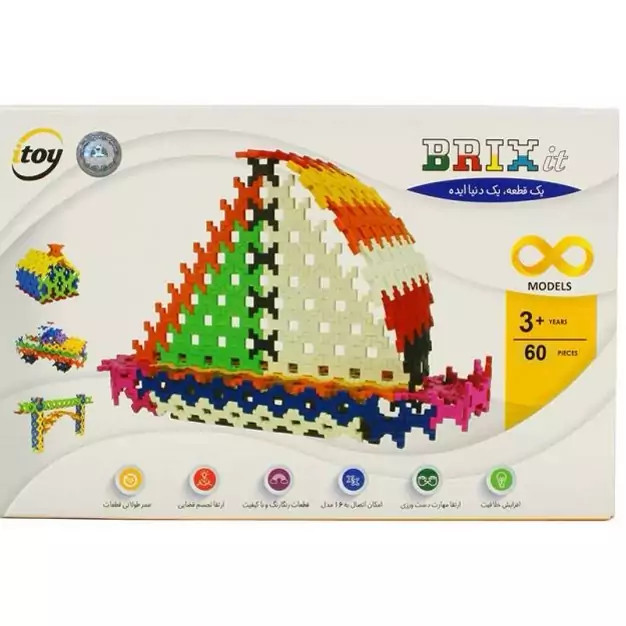 اسباب بازی بریکس 60 قطعه آی توی از جنس پلاستیک بسیار مرغوبی تولید شده است که فاقد هر گونه مواد شیمیایی و رنگ های سمی میباشد و حفظ سلامتی شما را در حین بازی به طور کامل تضمین می کند. همچنین به علت جنس پلاستیکیاش قابلیت شست و شو دارد و نشکن نیز میباشد.