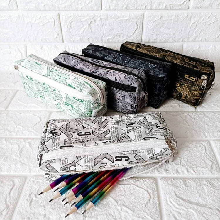 جامدادی سه زیپ پارچه ای طرح روزنامه ای قابل شست وشو بزرگ و جادار کیفیت عالی