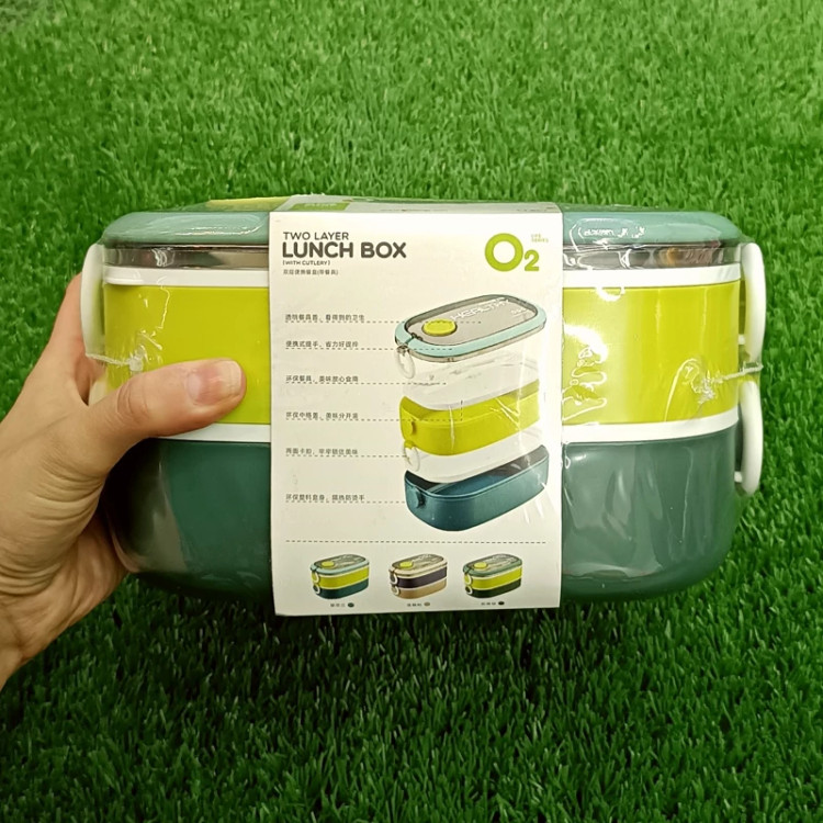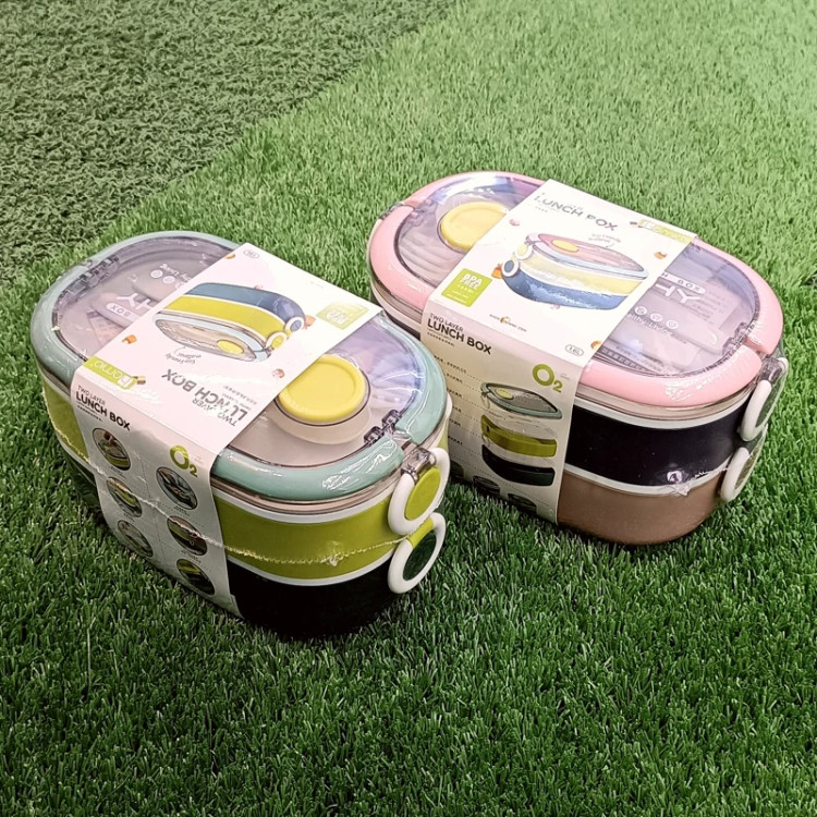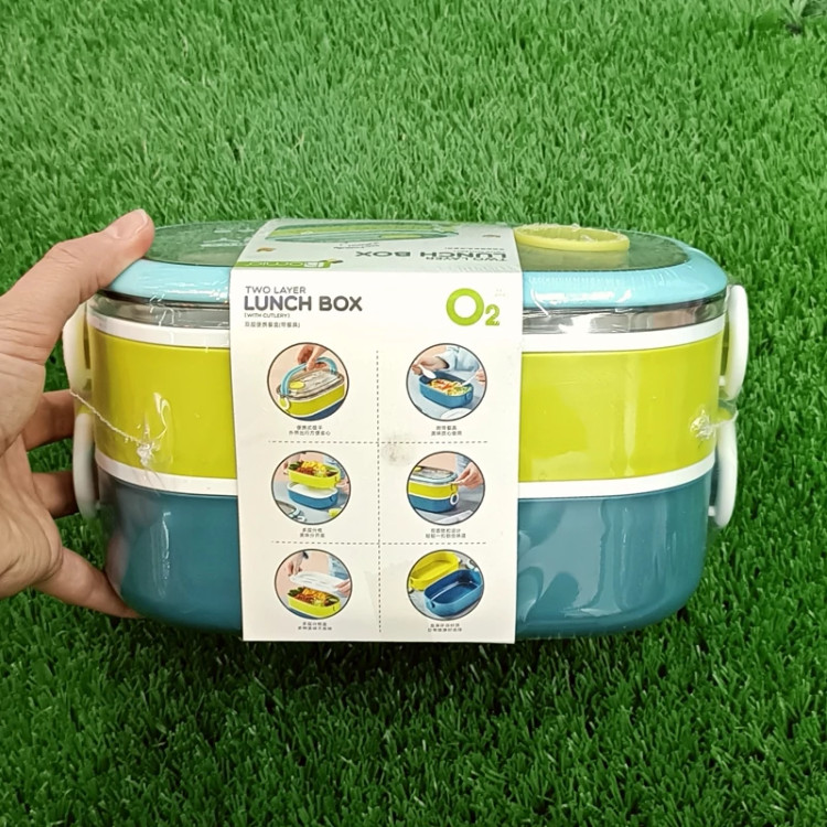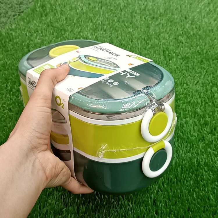 ظرف غذا دوطبقه لوکس وارداتی لانچ باکس ظرف غذاکودک ظرف دو طبقه