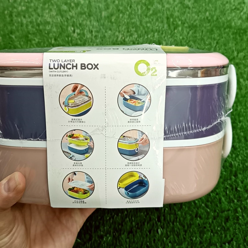 ظرف غذا دوطبقه لوکس وارداتی لانچ باکس ظرف غذاکودک ظرف دو طبقه