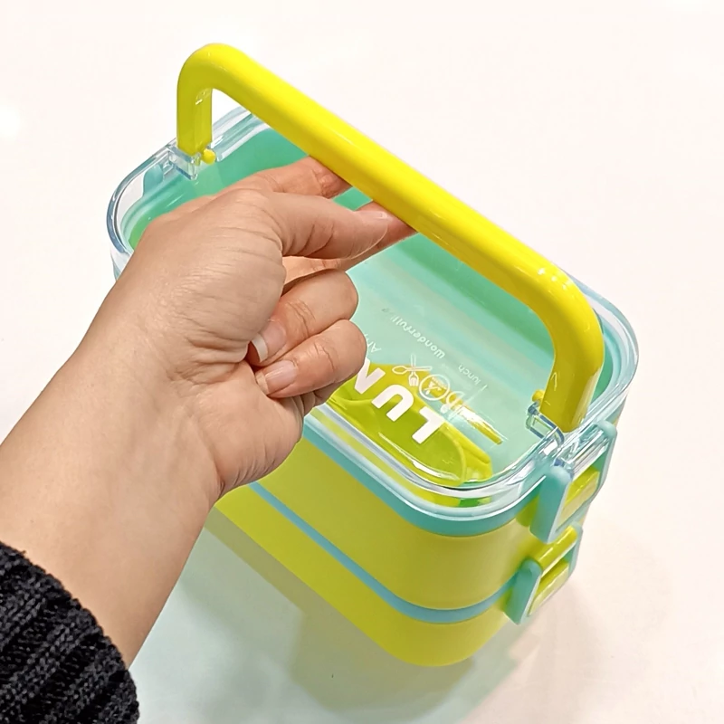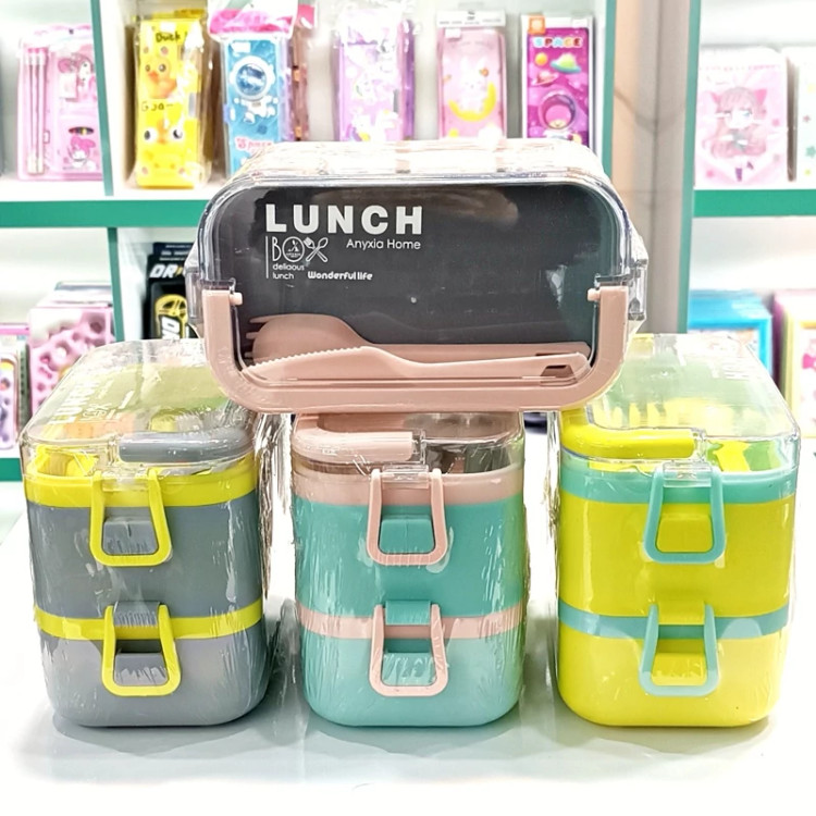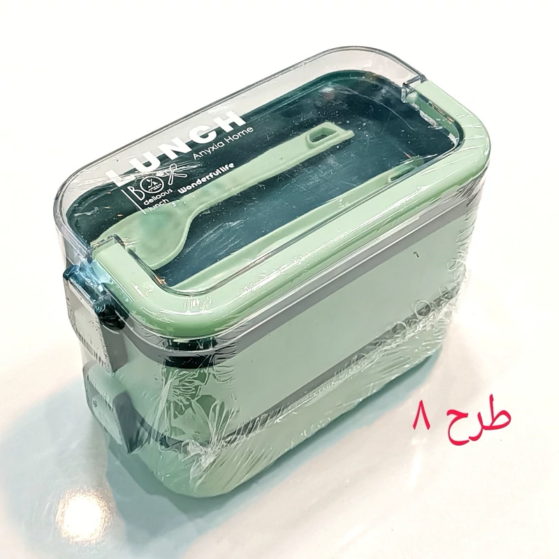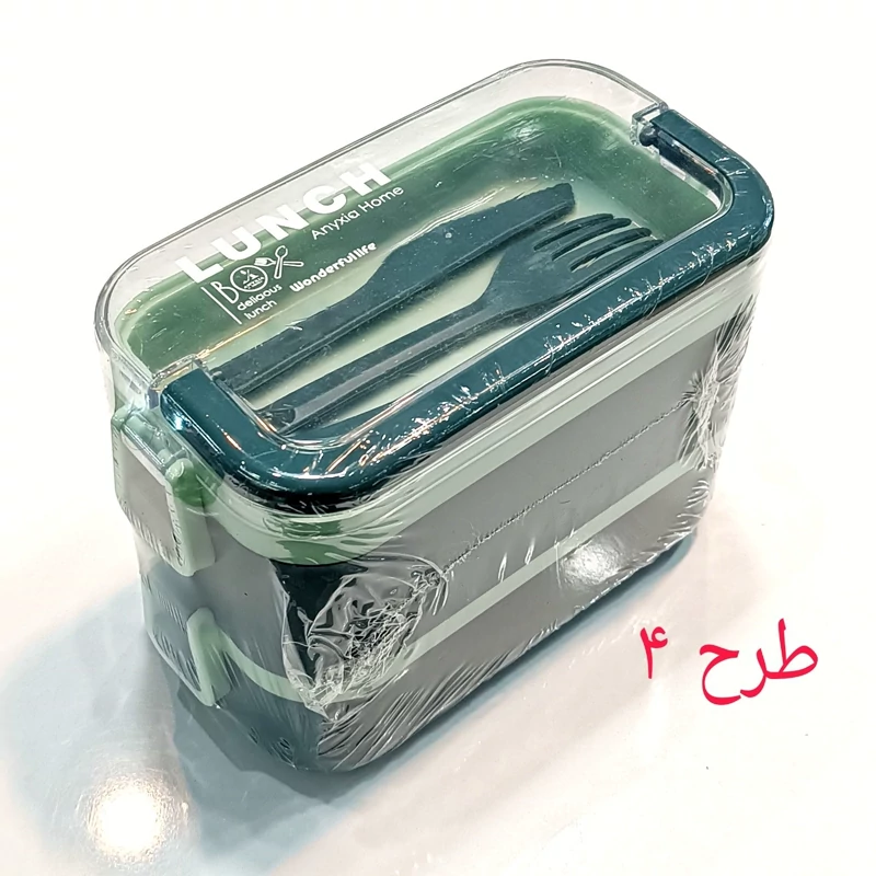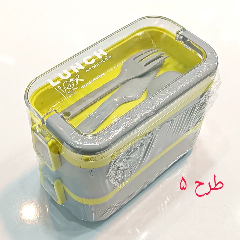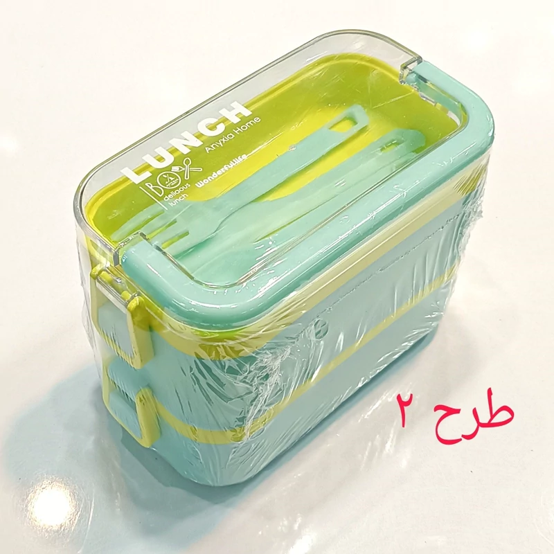 ظرف غذا دو طبقه دسته دار همراه با قاشق و چنگال و چاقو در رنگهای متنوع و جذاب و دوست داشتنی مناسب سلیقه های مختلف و قابل استفاده در مکانهای مختلف