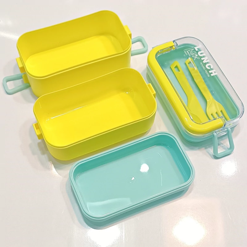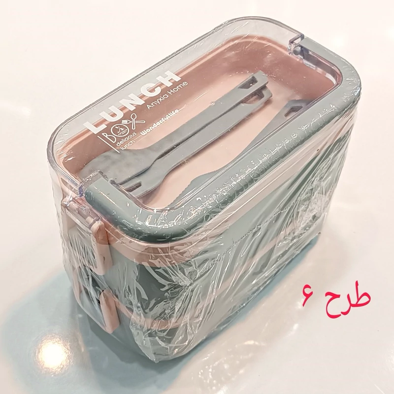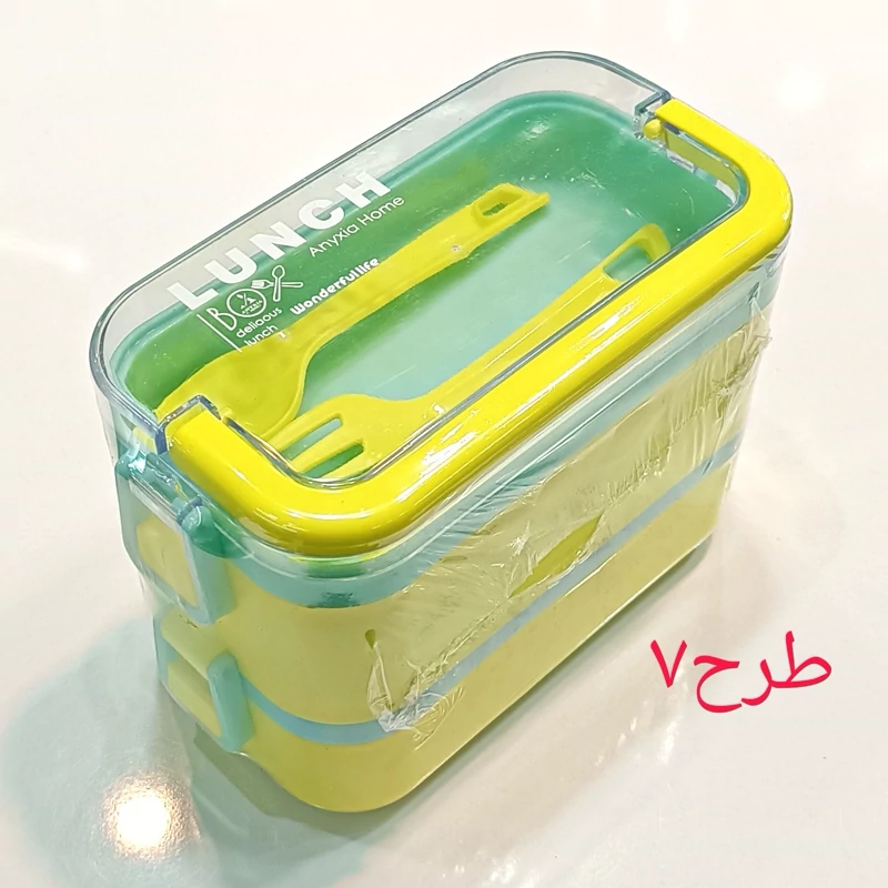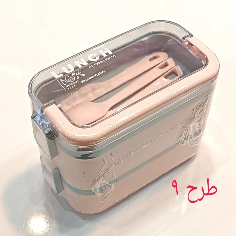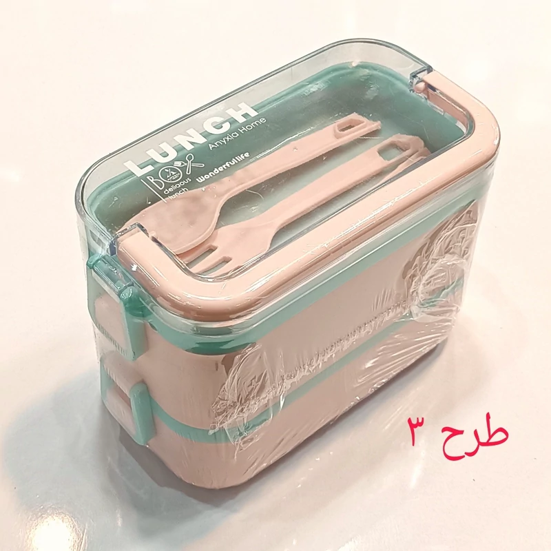 ظرف غذا دو طبقه دسته دار همراه با قاشق و چنگال و چاقو در رنگهای متنوع و جذاب و دوست داشتنی مناسب سلیقه های مختلف و قابل استفاده در مکانهای مختلف