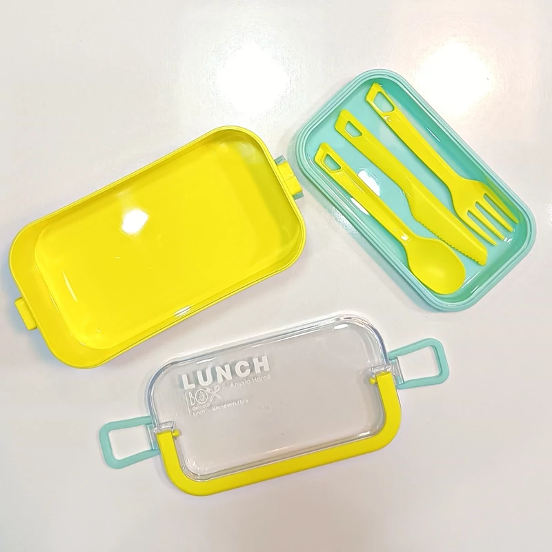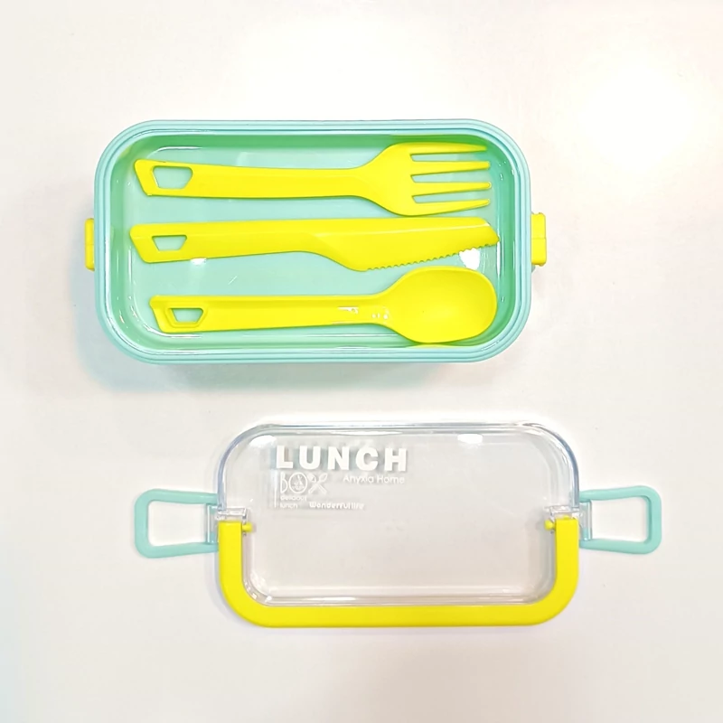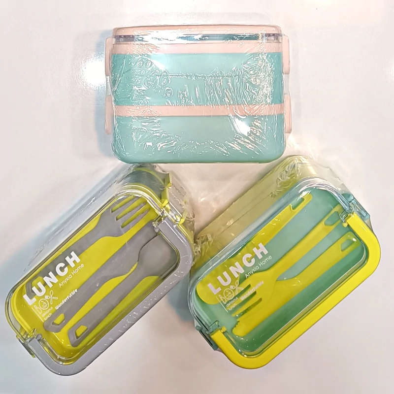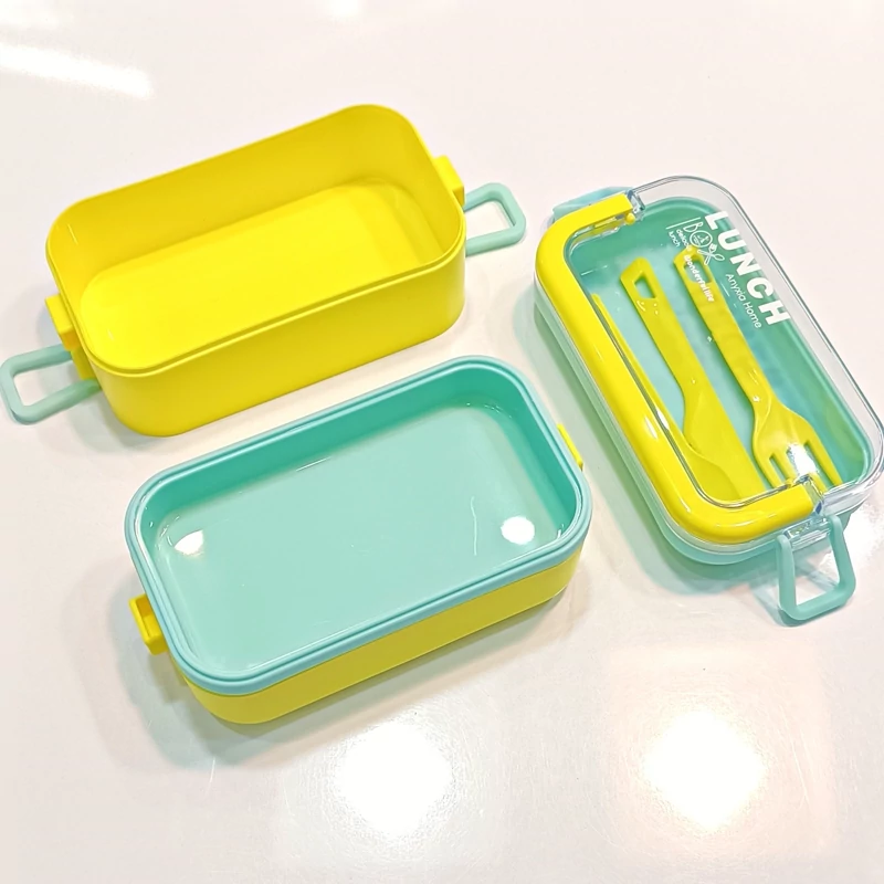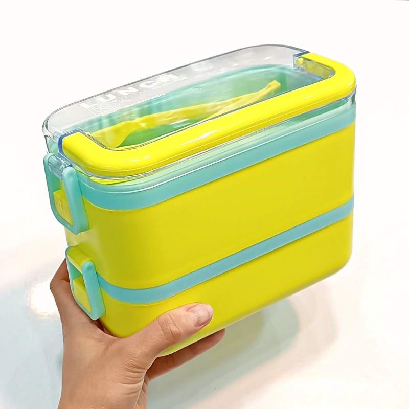 ظرف غذا دو طبقه دسته دار همراه با قاشق و چنگال و چاقو در رنگهای متنوع و جذاب و دوست داشتنی مناسب سلیقه های مختلف و قابل استفاده در مکانهای مختلف