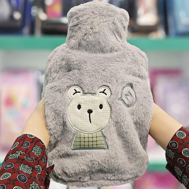 کیسه آب گرم پولیشی فانتزی سایز بزرگ طرح تدی - کیف آب گرم دو تیکه - کیسه آبگرم - کیف آبگرم - کیف آب گرم فانتزی