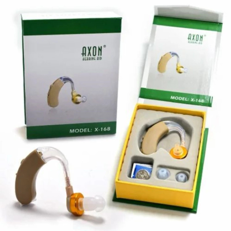 سمعک آنالوگ باتری خور (پشت گوش) برند AXON مدل X-168،رنگ کرم،بدون نیاز به قالب گیری،مناسب برای تمامی سنین،کیفیت صدا عالی