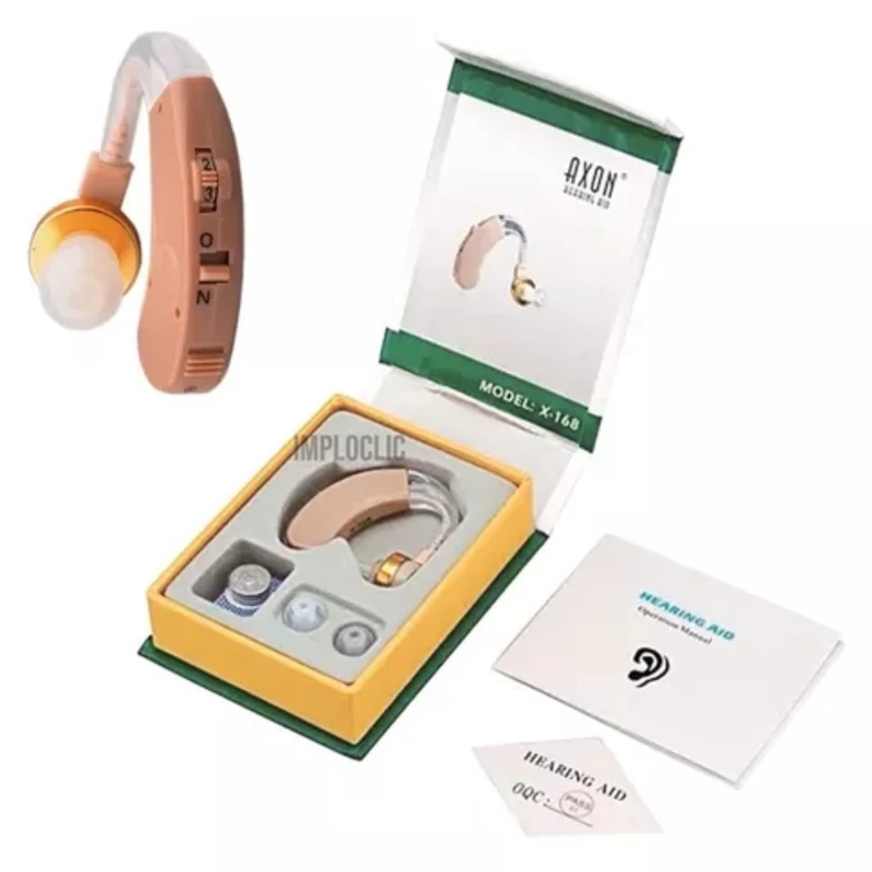 سمعک آنالوگ باتری خور (پشت گوش) برند AXON مدل X-168،رنگ کرم،بدون نیاز به قالب گیری،مناسب برای تمامی سنین،کیفیت صدا عالی