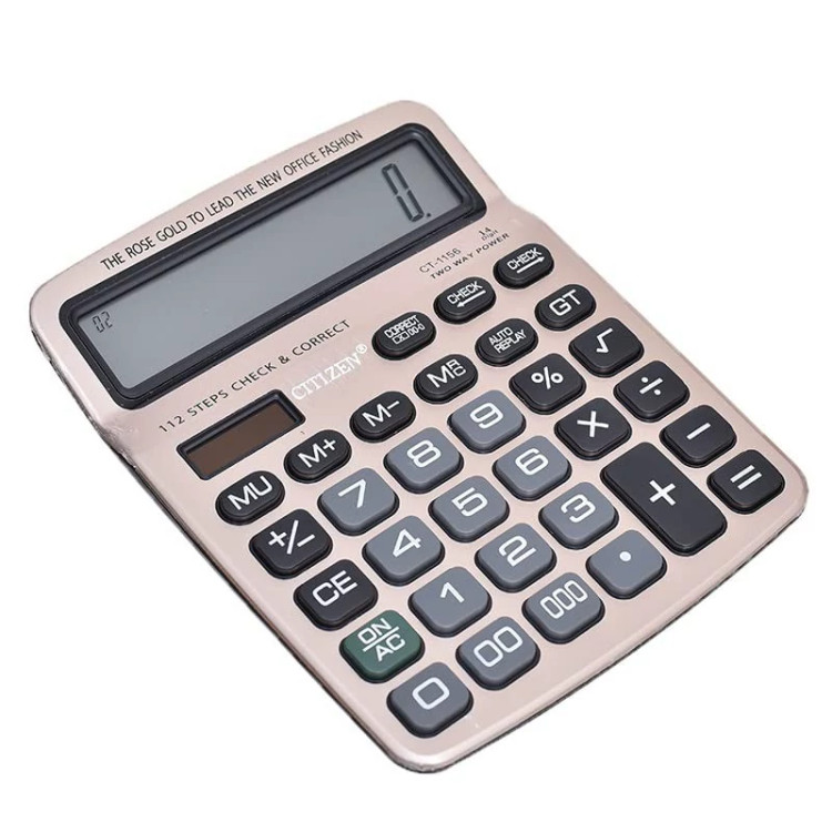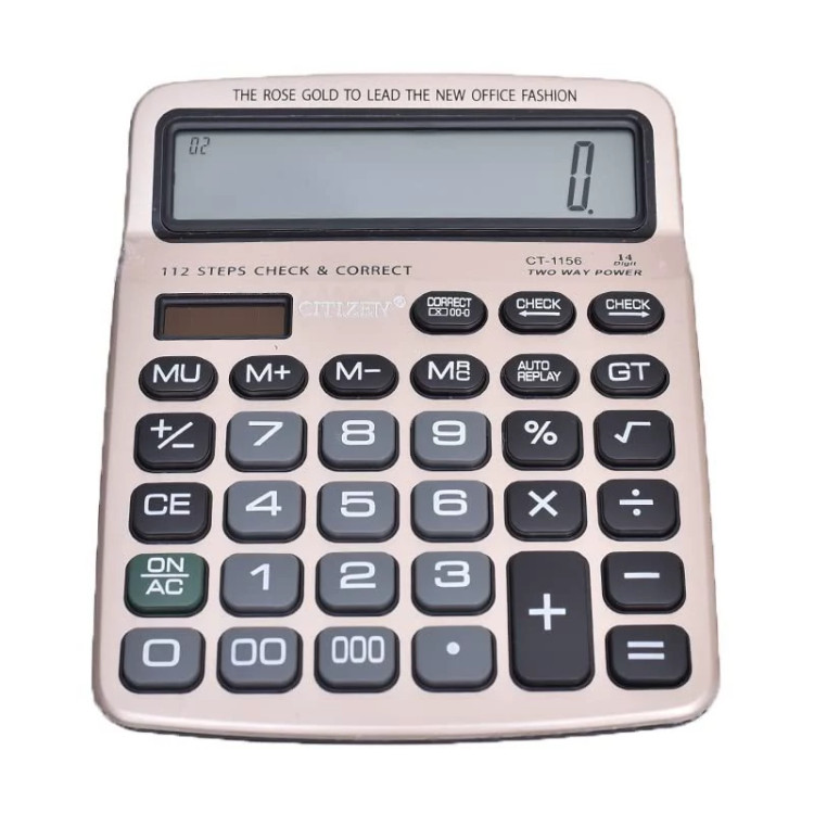 ماشین حساب رومیزی 14 رقم سیتیزن مدل CITIZEN CT-1156G دارای پنل شارژ خورشیدی جهت کارکرد ماشین حساب بدون استفاده از باتری
