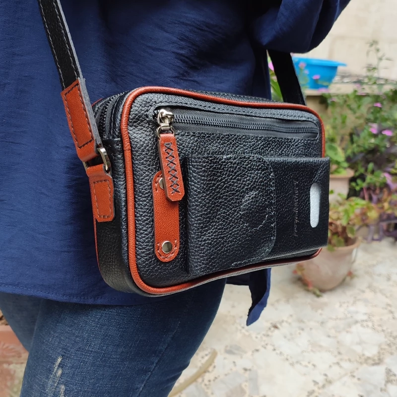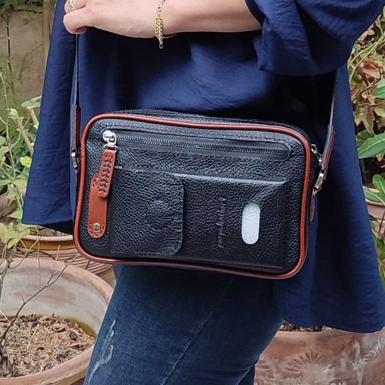 کیف رودوشی چرم طبیعی دست دوز پریا مشکی - عسلی کد pmb 824