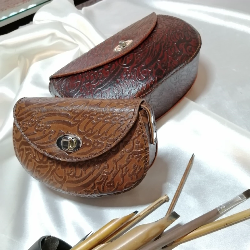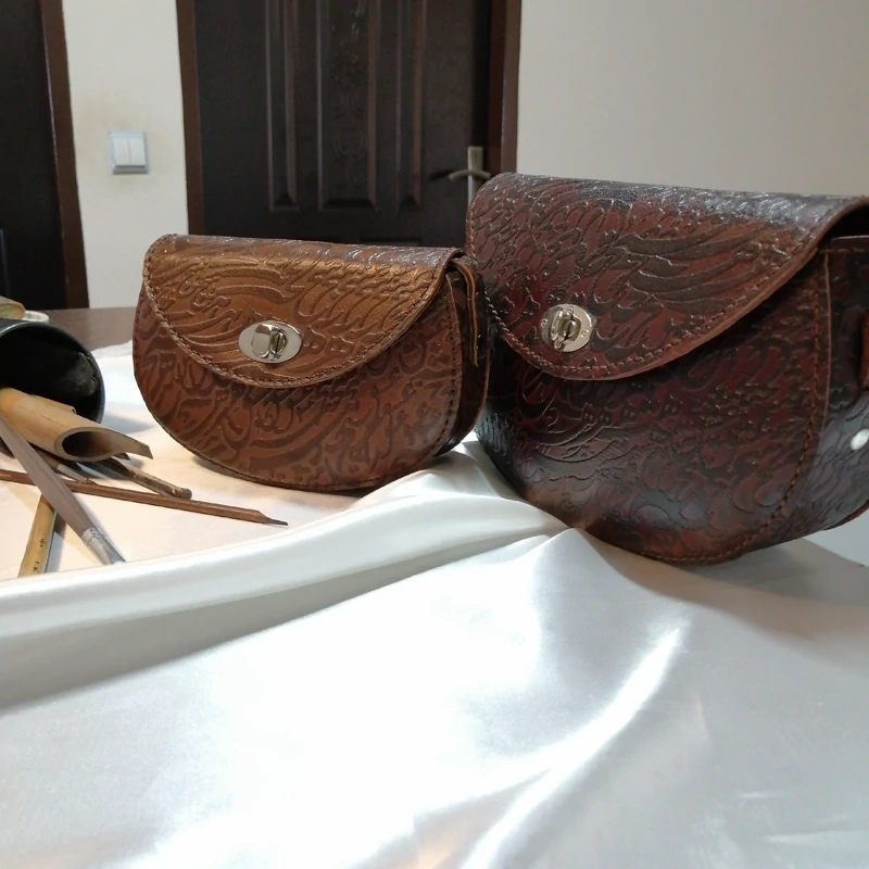 تمام مراحل ساخت از جمله الگو ،برش، سوراخکاری، دوخت و........ تماما با دست بدون استفاده از ماشین آلات صنعتی انجام شده