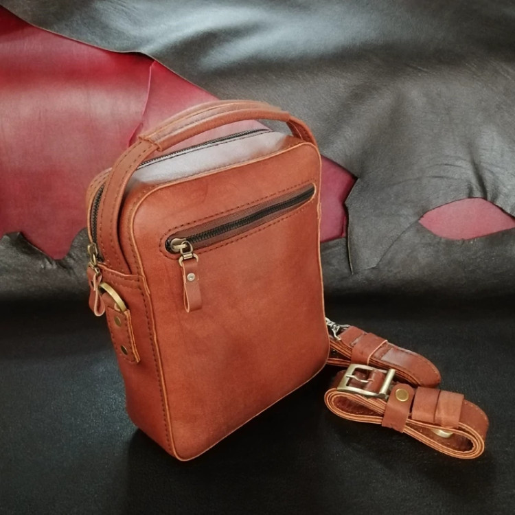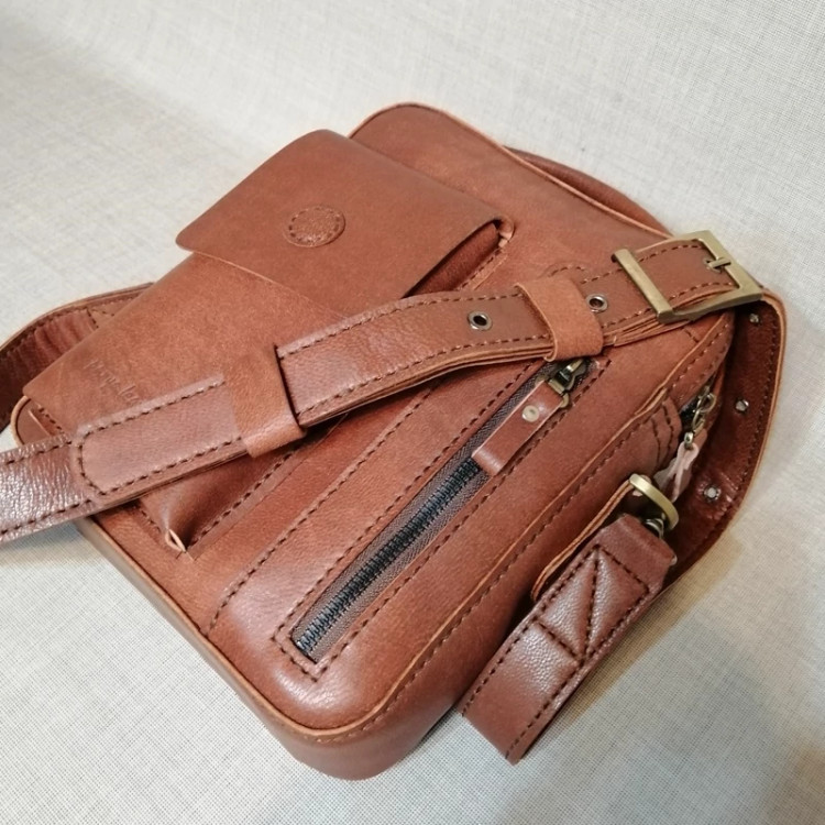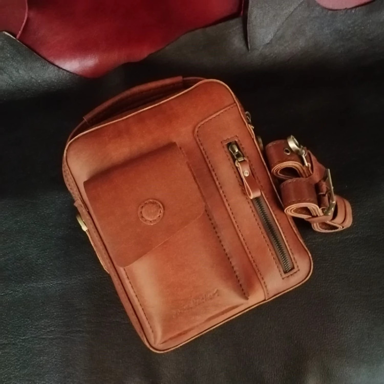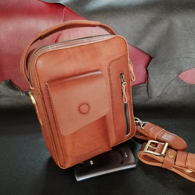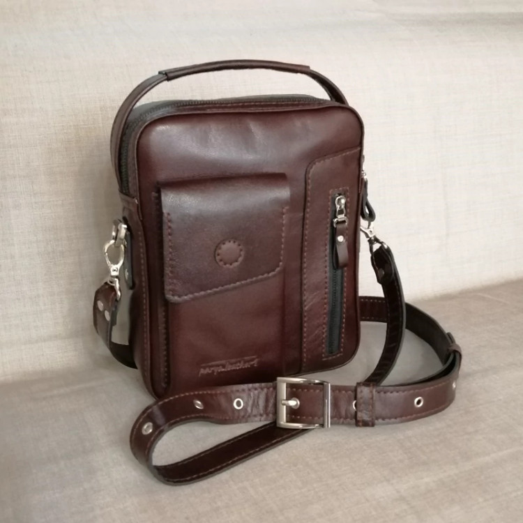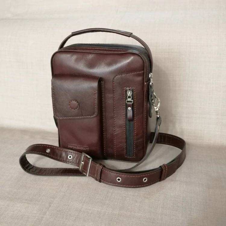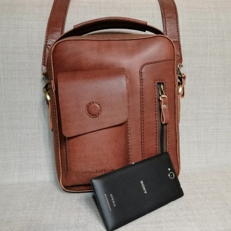 کیف رودوشی مردانه چرم طبیعی دست دوز پریا کد pmb 813 - B چرم بزی