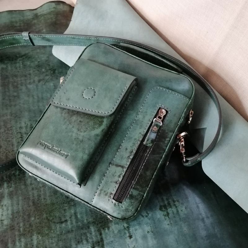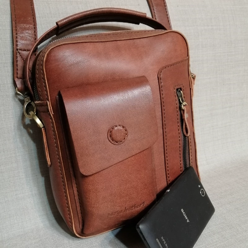 کیف رودوشی مردانه چرم طبیعی دست دوز پریا کد pmb 813 - B چرم بزی