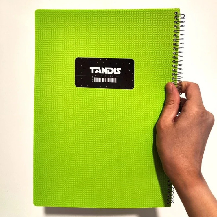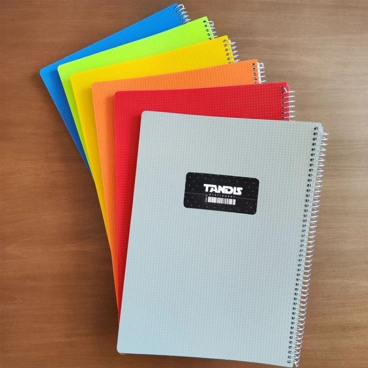 دفتر سیمی 100برگ سایز a4 تندیس - جلد طلقی سایز رحلی- فنر مارپیچ