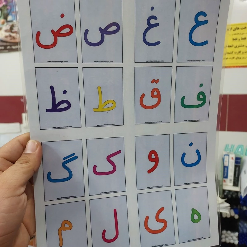 فلش کارت حروف الفبای فارسی لمینت شده با چاپ رنگی- 32 حرف