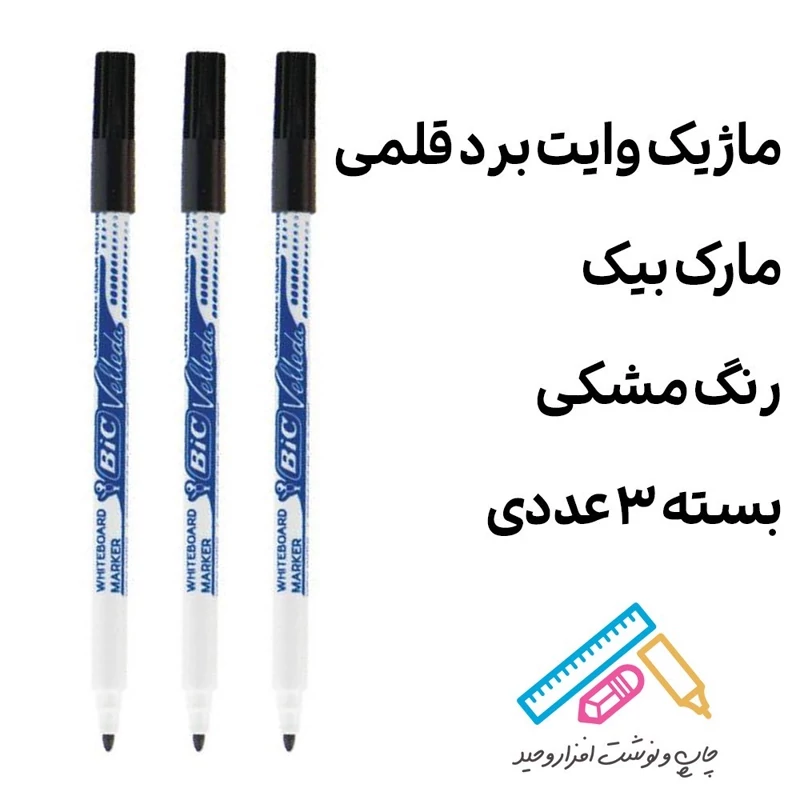 ماژیک وایت برد بیک قلمی مشکی بسته 3 عددی